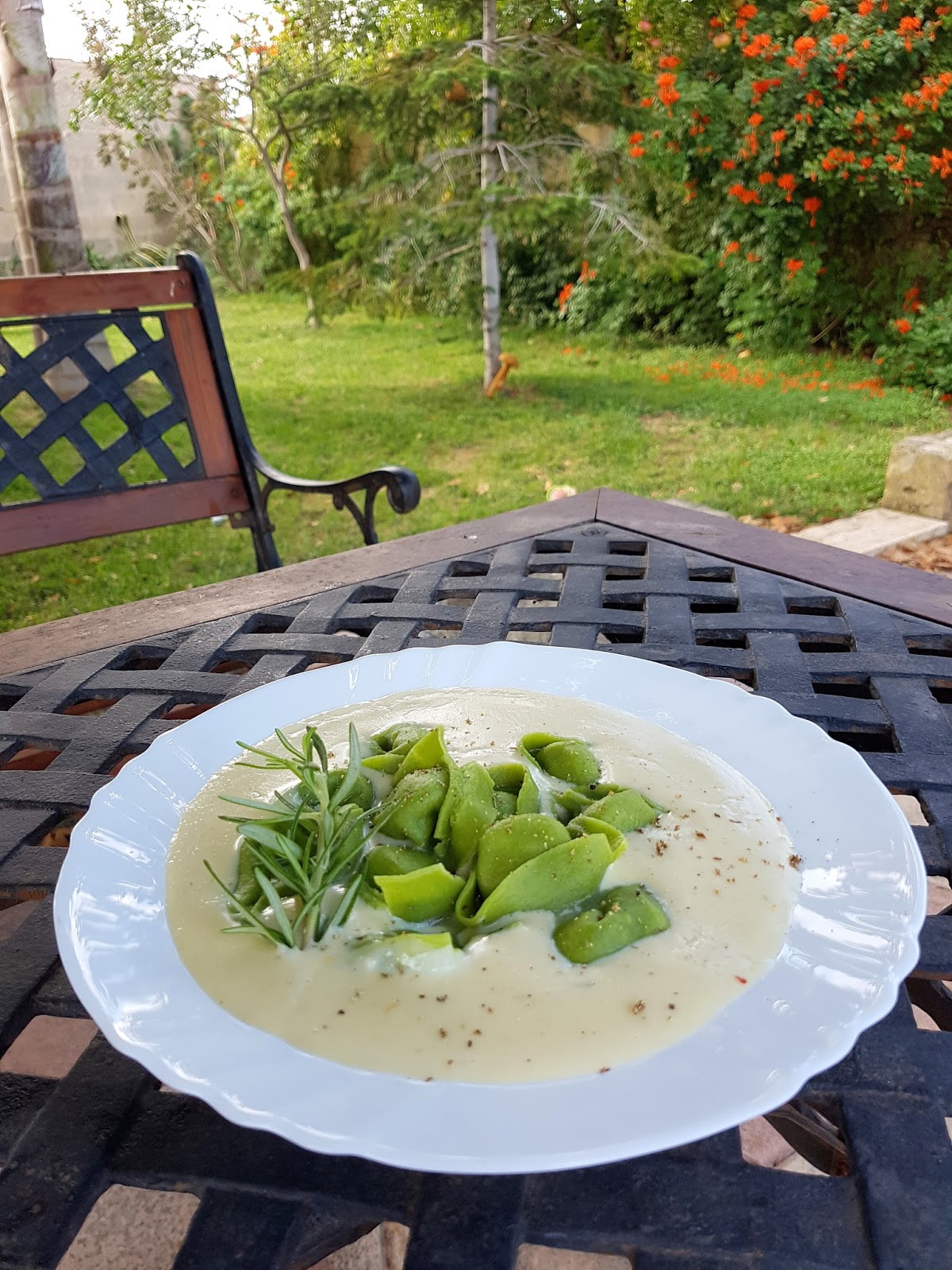 gdy warzywa zmiękną, dodać pokrojony w mniejsze kawałki ser, zalać śmietaną i posypać tymiankiem
