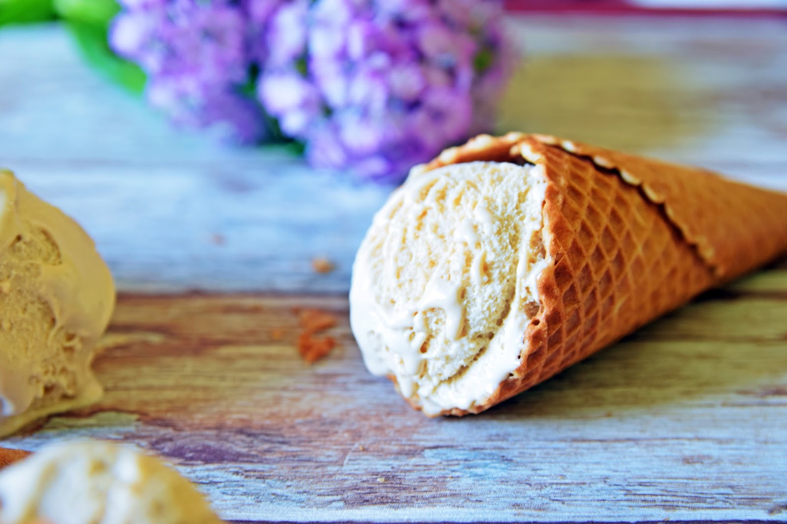 Śmietankę i mleko podgrzewamy do zagotowania. Żółtka z cukrem ubijamy na puszystą masę a następnie dodajemy przestudzone mleko ze śmietanką. Dodajemy masło palone i gotujmy aż zgęstnieje. (Nie możemy doprowadzić do wrzenia bo zetną nam się żółtka).Lekko gęsta masę schładzamy. Następnie przekładamy do pojemnika i zamrażamy w zamrażalce przez ok 4-5 godzin. Co ok godzinę mieszamy nasze lody aby nie wytworzyły się kryształki lodu. Wyjmujemy kilka minut przed podaniem.