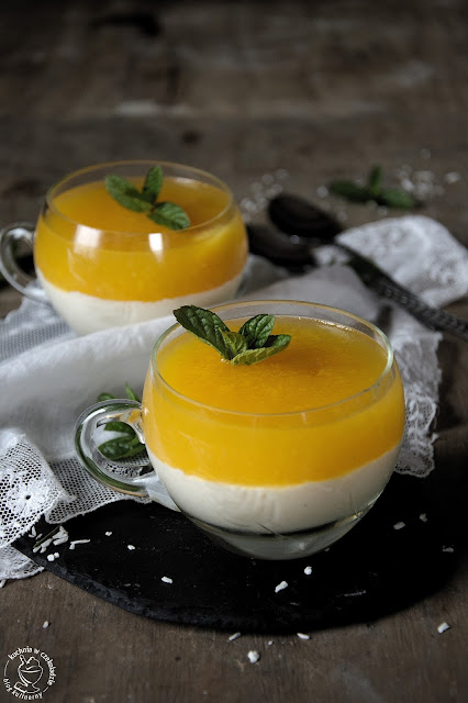 Lubię desery wszelkie o czym już wiecie, ale przyznaję bez bicia, że panna cotty nigdy nie robiłam, a i chyba nie jadłam. Nie mam też porównania czy jest lepsza od innych, toteż może i nie powinnam jej zbytnio zachwalać ;), ale przyznaję, że ogromnie mi smakowała. Lekka, owocowa z delikatną nutą kokosu. Sama sobie się dziwię, że dopiero odważyłam się na jej przygotowanie, ale tych słodyczy wszelkich teraz tyle, że nie sposób wszystkiego od razu wypróbować. I zjeść ;)