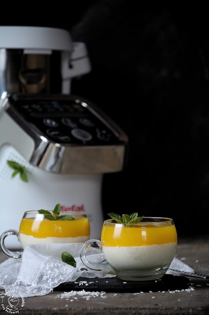 Do naczynia TC z założonym mieszadłem wlewamy śmietankę, 1 łyżeczkę cukru waniliowego oraz cukier trzcinowy. Uruchamiamy na 5 minut, obroty 3, temp. 100°C. Po upływie 3 minut dodajemy mleko kokosowe przez otwór w pokrywie, a pół minuty przed końcem czasu dajemy żelatynę i zwiększamy obroty do 5. Masę rozlewamy do szklaneczek (pucharków) i studzimy.