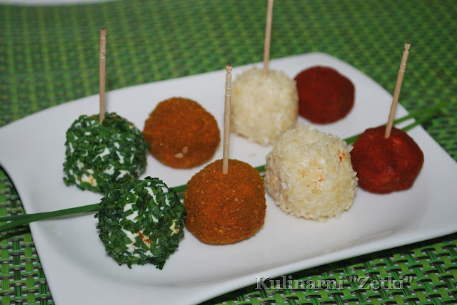 Jedni mają kulki mocy, co to trzeba jeść przed meczem, a my mamy kulki serowe i to kolorowe kulki serowe. A, że w kulki nie lubimy lecieć to raz dwa przepis serwujemy tfu-tfu prezentujemy, bo kulki zjedzone. Trzeba czekać na nowe, albo samemu zakasać rękawy i do dzieła.
