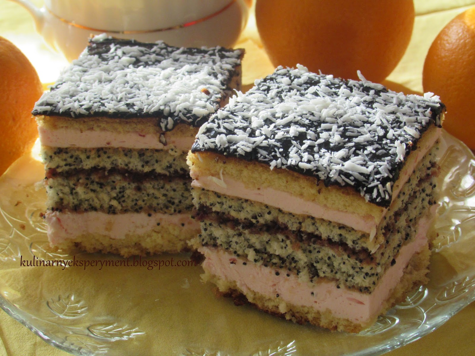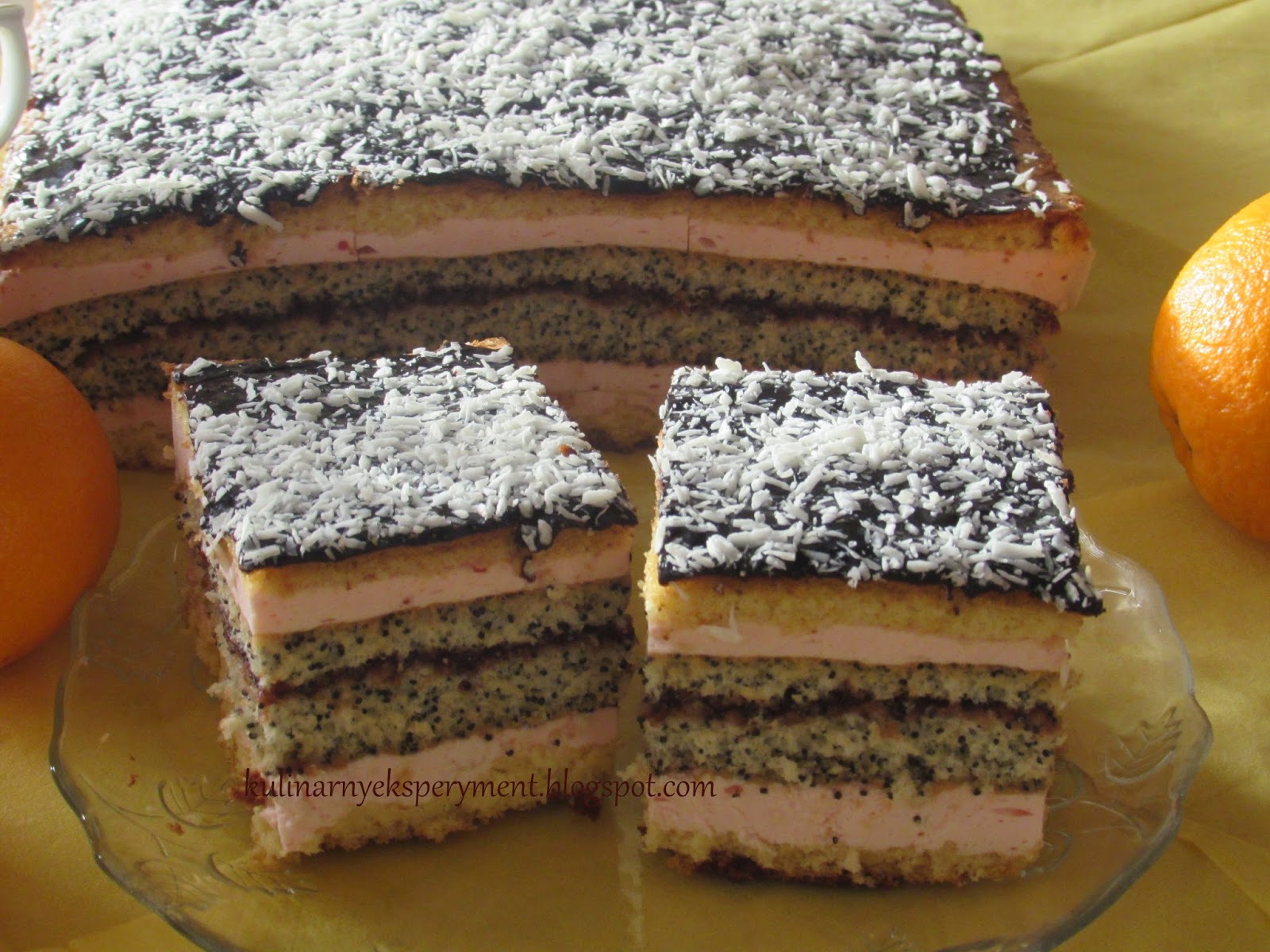 Dzisiaj zapraszam Was na pyszne, wielowarstwowe ciasto. Mimo, że jest nieco pracochłonne, to warto je upiec. Nie tylko ładnie się prezentuje, ale jest również bardzo smaczne. W skład ciasta wchodzi puszysty biszkopt, ciasto makowe, krem budyniowo-maśla...