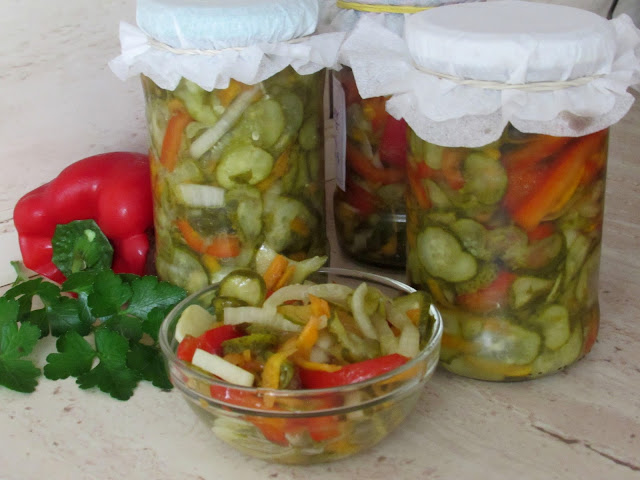 Sezon na ogórki już się zaczął więc polecam przepisy na trzy sałatki które znikają co roku z mojej spiżarni. Sami musicie przetestować i powiedzieć która sałatka jest najlepsza.Mnie najbardziej smakuje ta w sosie pomidorowym, mężowi ta z papryką i marchewką a dzieciom sałatka z fasolką szparagową więc biedny mój los i muszę robić je wszystkie.