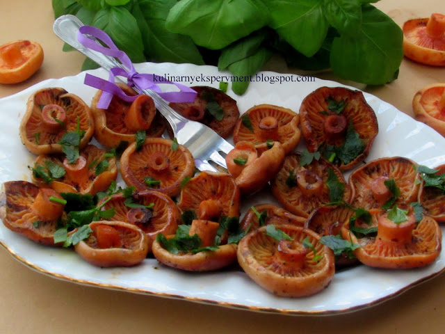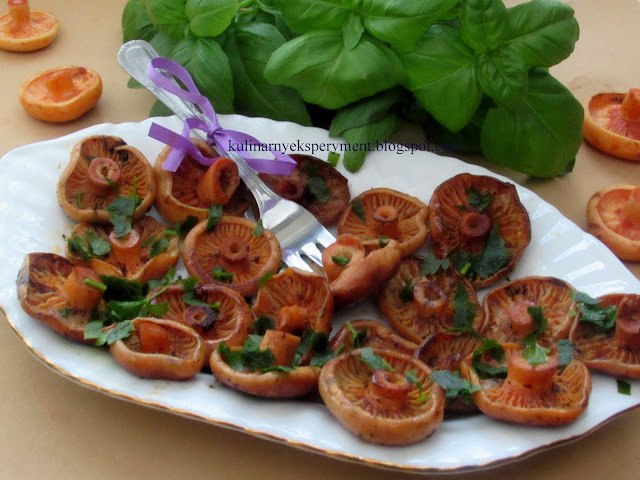 Rydze można zamiast na oleju upiec na maśle lub oliwie z oliwek. Ja staram się wykorzystać sezon grzybowy i część grzybów marynuję w occie a część odgotowuję i zamrażam.