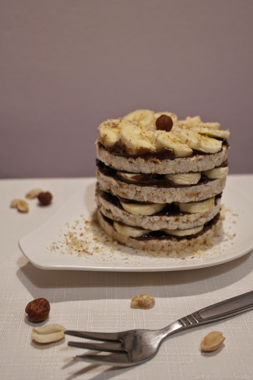 Na pierwszego wafla nakładamy od góry warstwę kremu i plasterki banana. Przykrywamy kolejnym waflem posmarowanym od dołu i góry kremem. W ten sposób przygotowujemy 3 warstwy. Na najwyższą nakładamy ostatnią warstwę kremu i plasterki banana, a na koniec obsypujemy orzechami.