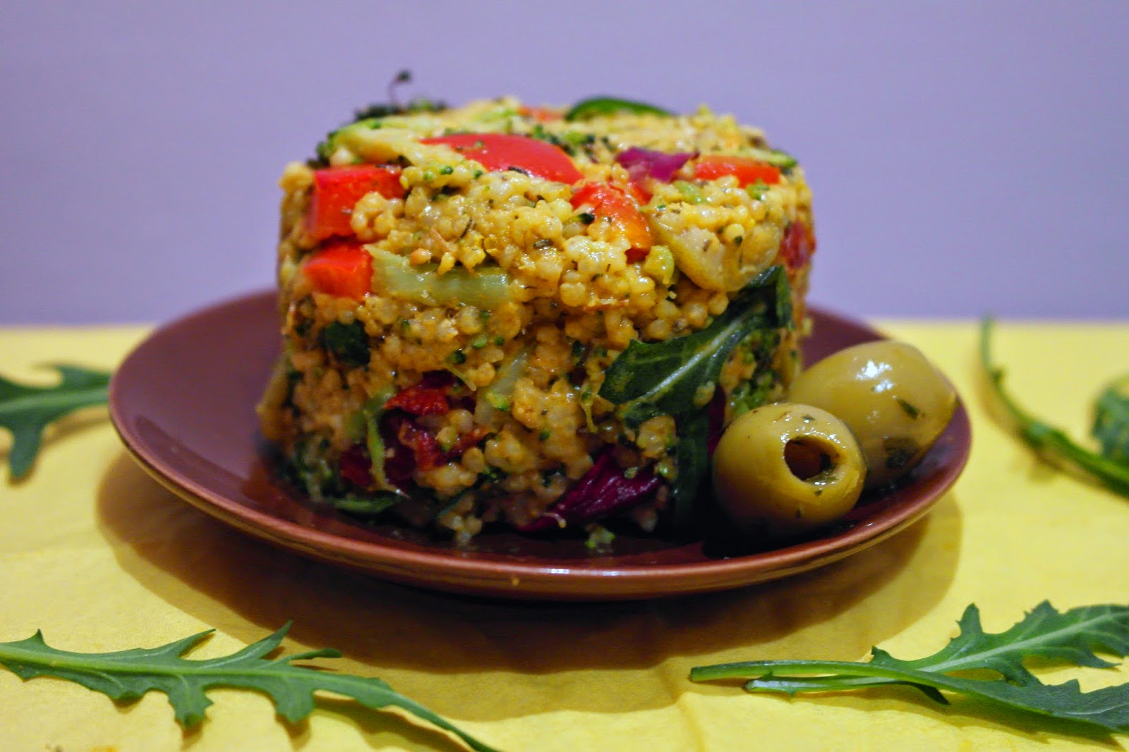 Dziś polecam warzywną sałatkę z kaszy jaglanej i rukoli!