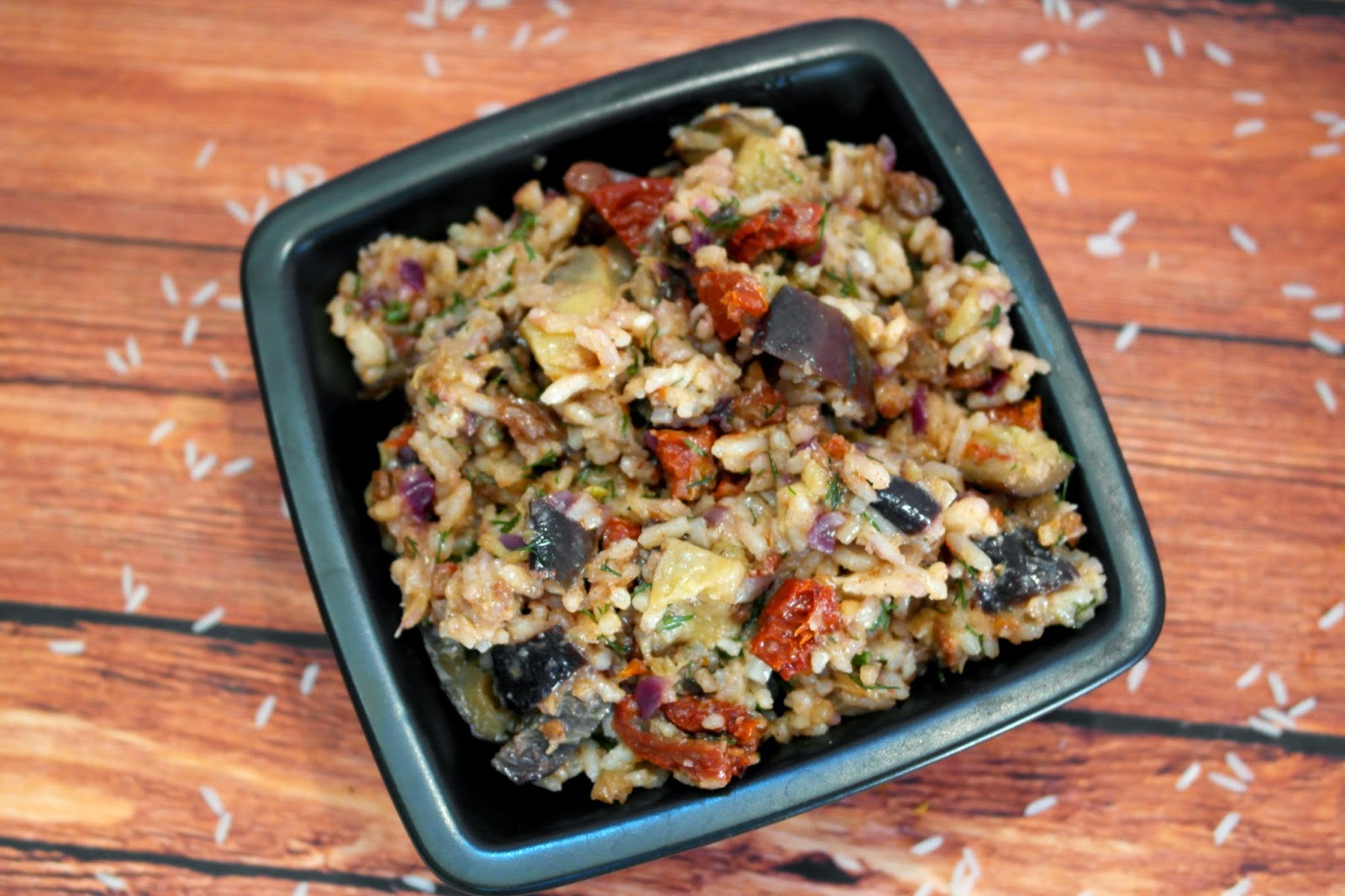 Dziś polecam ryżową sałatkę bakłażanowo-pomidorową!