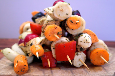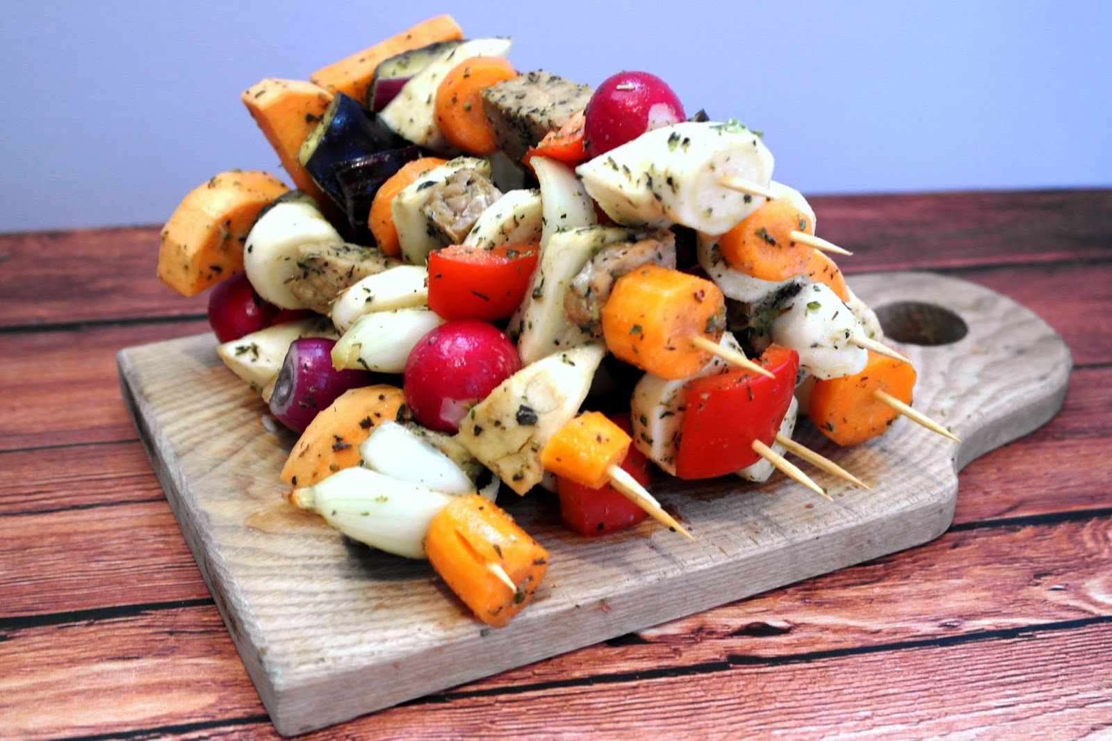 Dziś polecam warzywne szaszłyki z seitanem i ziołami! Składniki: - 1 marchew