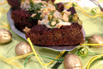 Dosyć już tych przeprosin, pora na konkrety! Dziś w roli głównej PASZTET! Na święta Bożego Narodzenia zawsze piekę wege pasztet, chyba to już stało się moją tradycją ;-) Piszę w przed dzień Sylwestra, a ten wytrawny wypiek idealnie nadaje się jako pyszna zimna lub ciepła przystawka. Można go podać z sosem tatarskim i chrupiącą bagietką. Ja tak właśnie go zajadałam...mniam! Do przygotowania pasztetu użyłam aż 3 RODZAJE SOCZEWICY: CZARNĄ, ZIELONĄ i CZERWONĄ, a smakudodał ogórek konserwowy i koperek. Myślę, że dosyć Wam już apetytu narobiłam, dlatego po prostu zapraszam do skorzystania z pomysłu!
