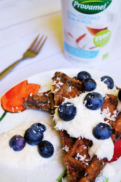 Przepis idealnie pasuje na weekendowe śniadanie w towarzystwie ulubionych dodatków. Ja wybrałam bezcukrowy JOGURT SOJOWO-KOKOSOWY oraz kwaśne borówki. Mam nadzieję, że znajdą się wśród Was chętni na taki przysmak!!!