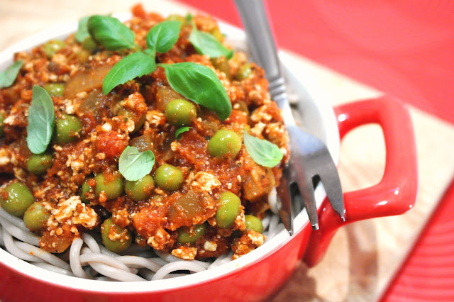 Po 2 intensywnych tygodniach w pracy i wyjętym z życia czasie wolnym udało mi się wreszcie napisać nowy post z jakżeby inaczej ekspresowym przepisem na obiado-kolację. Myślę, że to danie jest znane wszystkim ;-))) Jednak czy każdy z Was własnoręcznie robił HIPER SZYBKI i ULTRA SMACZNY BOLOŃSKI SOS Z GROSZKIEM I TOFU?!?! Potrzebnych jest zaledwie kilka składników, chwila wolnego czasu i odrobina chęci...ale myślę, że to ostatnie się zawsze znajdzie, bo kto odmówi pysznemu bolkowi z makaronem ;-P