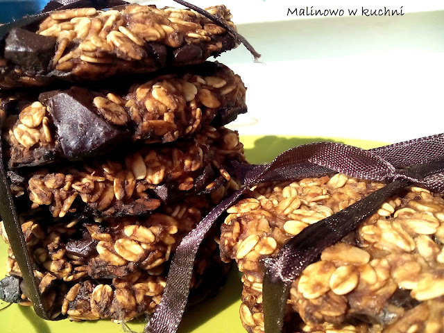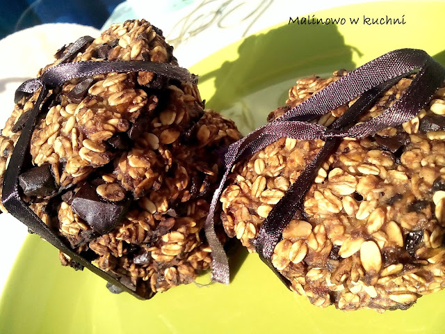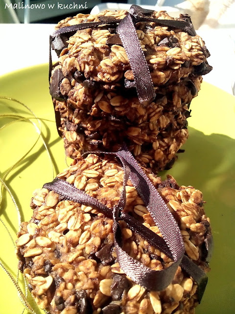 Przygotowanie:Banany kroimy do miski i dodajemy płatki owsiane. Za pomocą widelca łączymy ze sobą składniki, aż powstanie ciasto, na końcu można dodać czekoladę lub bakalie. Zwilżonymi dłońmi formujemy kulki, kładziemy na blachę wyłożoną papierem do pieczenia i lekko spłaszczamy, nadając im kształt ciastek. Wkładamy do piekarnika rozgrzanego do 180°C i pieczemy ok. 15 min. Ciastka najlepiej smakują na drugi dzień. SMACZNEGO!!!