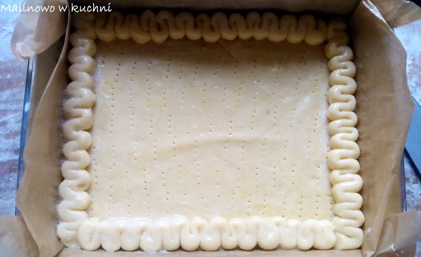 Wszystkie składniki zagnieść. Ciasto podzielić na 2 części (mniejszą i większą), wstawić do lodówki na ok. 30 minut. Większe ciasto wyjąć z lodówki, rozwałkować i wyłożyć nim blachę (20x25 cm wyłożoną papierem do pieczenia). Z mniejszego ciasta zrobić wałeczki i zawinąć je na bokach ciasta, tak jak jest to pokazane na zdjęciu. Ciasto posmarować białkiem i piec w temp. 180*C ok. 25 minut, do zarumienienia (jeśli na cieście w czasie pieczenia zrobi się górka, to nic, po wystudzeniu opadnie). Upieczone ciasto ostudzić i wyłożyć na nie kajmak. Udekorować. SMACZNEGO!!!