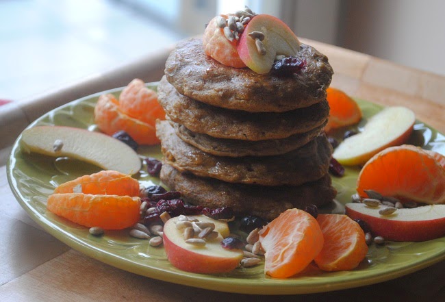 Placki z jabłkiem, żurawiną, prażonym słonecznikiem, syropem klonowym