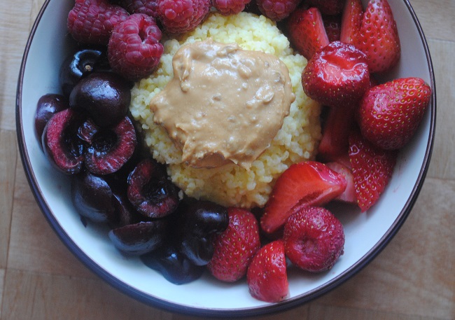 Waniliowa kasza jaglana z gorzką czekoladą i masłem orzechowym (z pekanami i s.klonowym)