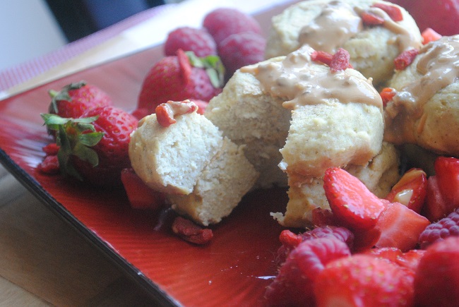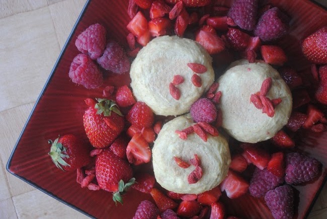 Różane tofurniczki owsiane z truskawkami, malinami, goji i masłem orzechowym