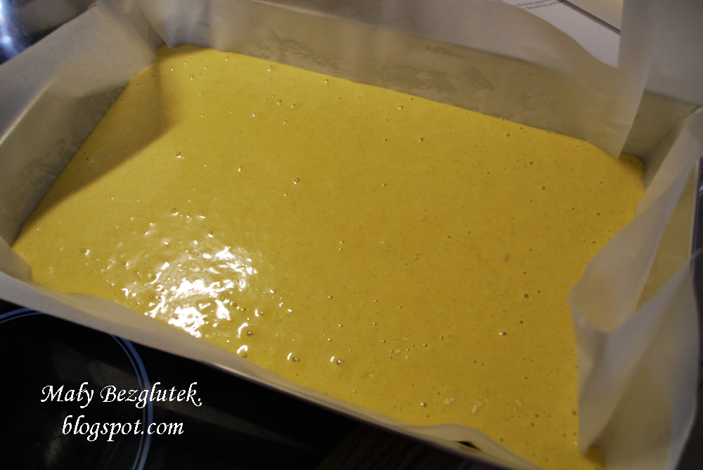 Masę wylać do formy wyłożonej papierem do pieczenia.