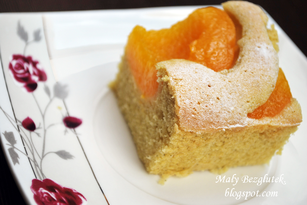 Ni to wydaje się ucierane, ni to wydaje się jogurtowe (dobra, musicie mi wybaczyć średnio pamiętam jak smakuje ciasto jogurtowe, ale wydaje mi się, że jeśli już to podobnie do tego; osoby jedzące nabiał mogą skonfrontować moją opinię, ale wiecie jak to jest jak się latami czegoś nie je ;)), ale przede wszystkim delikatne, lekko waniliowe, stosunkowo słodkie i z aromatem brzoskwiń. Idealne, nie tylko na przedwiośnie ;)