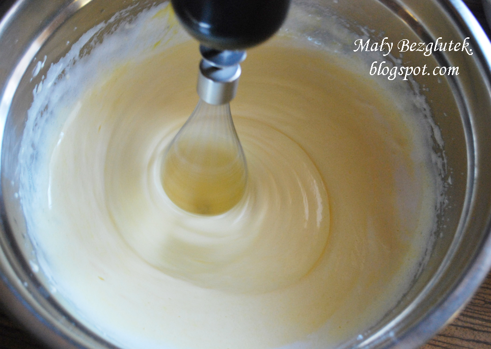 Białka oddzielić od żółtek. Białka ubić na sztywną pianę, dodać cukier, żółtka, olej, mleko z wanilią (po wyciągnięciu lasek), cały czas miksując. Następnie dodawać porcjami mąkę z proszkiem do pieczenia, wciąż cały czas miksując. Masa powinna mieć konsystencję gęstego ciasta naleśnikowego.