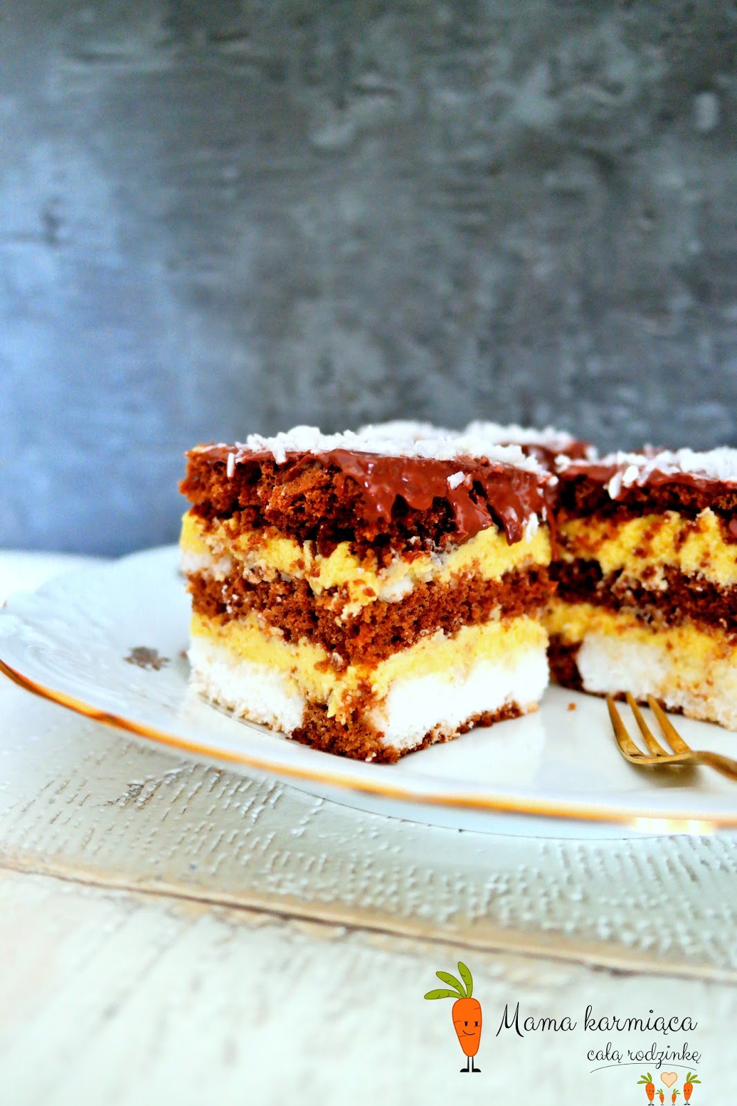 Ciasto studzimy i kroimy na 3 blaty.