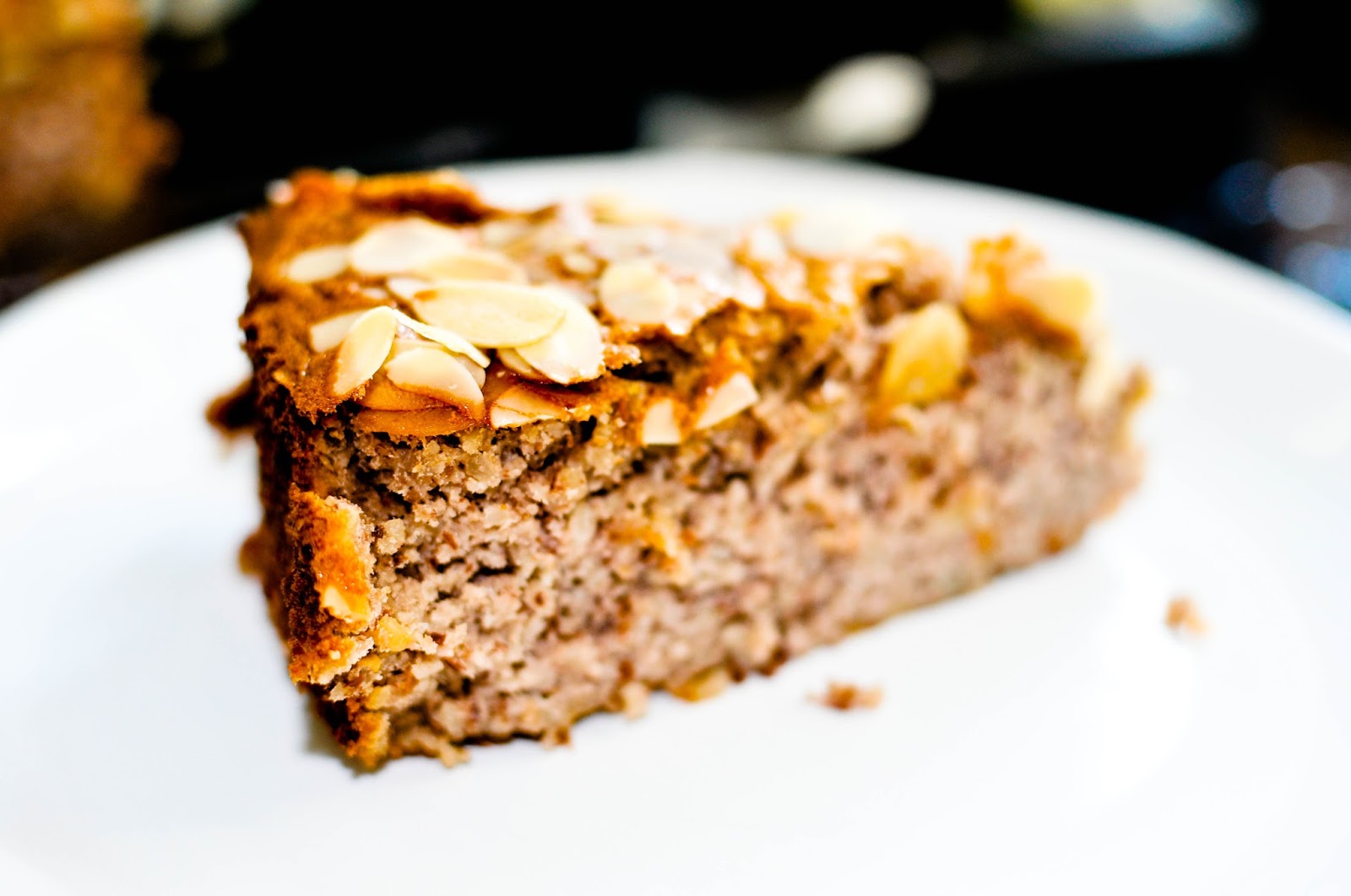 5. Przelać ciasto do formy, wierzch posypać płatkami migdałowymi i wstawić do pieca na około 45 minut. Ważne żeby przed wyjęciem sprawdzić potrząsając foremką, czy ciasto nie ma galaretowatej postaci - jeśli ma - podpiec jeszcze z 10 minut.