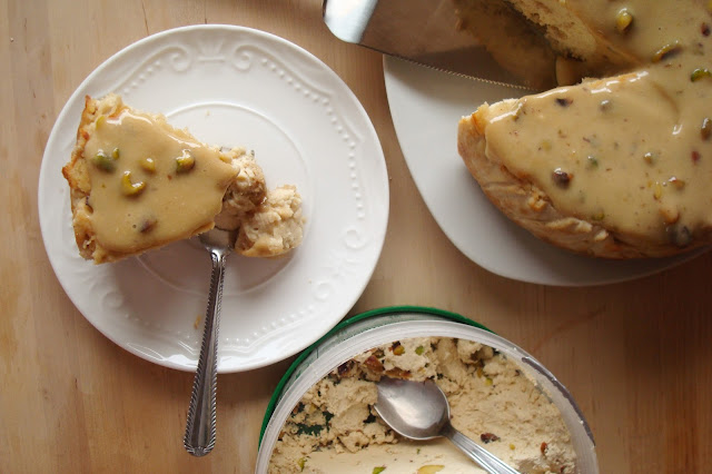 Zaczęłam od szukania przepisu z dodatkiem tahini, która stanowi podstawę chałwy (oczywiście oprócz cukru). Żaden przepis mnie jednak nie przekonywał - tahini było za mało, i efekt wydawał mi się nie dość chałwowy. W końcu znalazłam fajny przepis na tofurnik z masłem orzechowym i pomyślałam, że masło mogę zastąpić tahini, które w sumie jest czymś w rodzaju masła z ziaren sezamu. Nie zauważyłam jednak jednego szczegółu: to był tofurnik na zimno, i nie miał żadnego składnika, który pozwoliłby masie ściąć się w piekarniku. W ostatniej chwili wpadłam więc na pomysł, że dodam mąki z ciecierzycy, która świetnie sprawdziła się w ankowym przepisie na tofurnik. Jako że była to, delikatnie mówiąc, dość spontaniczna decyzja (by nie rzec - rozwiązanie ostatniej szansy), tym bardziej się zdziwiłam, kiedy wyciągnęłam upieczony tofurnik, całkiem trzymający fason. A kiedy go spróbowałam - Anka świadkiem - zaskoczona powtarzałam: "On jest dobry, o rany, on jest naprawdę dobry!".