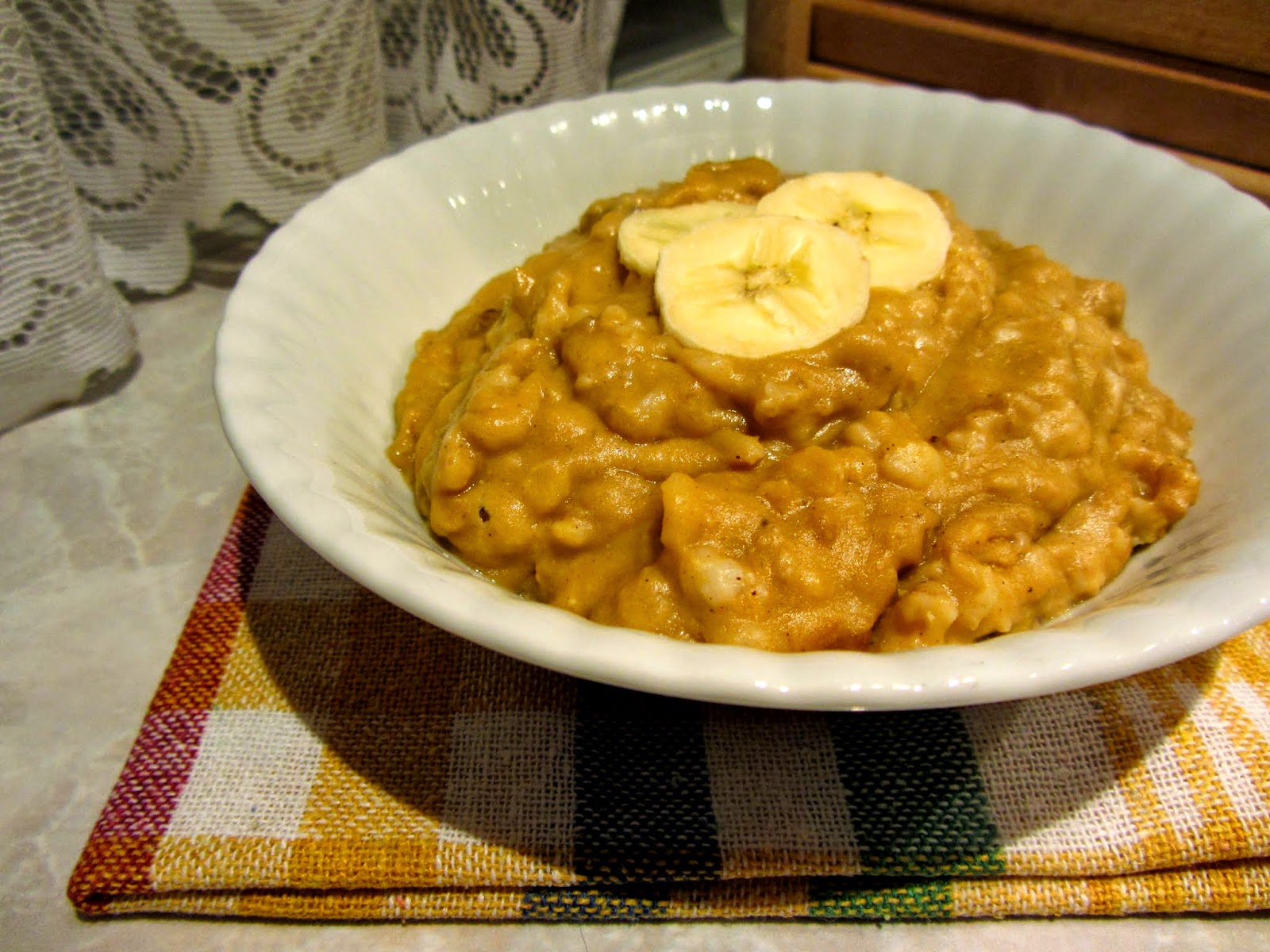 " Słoniowa . . . :) tak ją nazywam. Masło orzechowe, banan, batat kojarzą mi się właśnie ze słoniem xD . Uwielbiam musowe owsianki. Ta jest jedną z moich ulubionych. Przyprawy dodają jej charakteru"