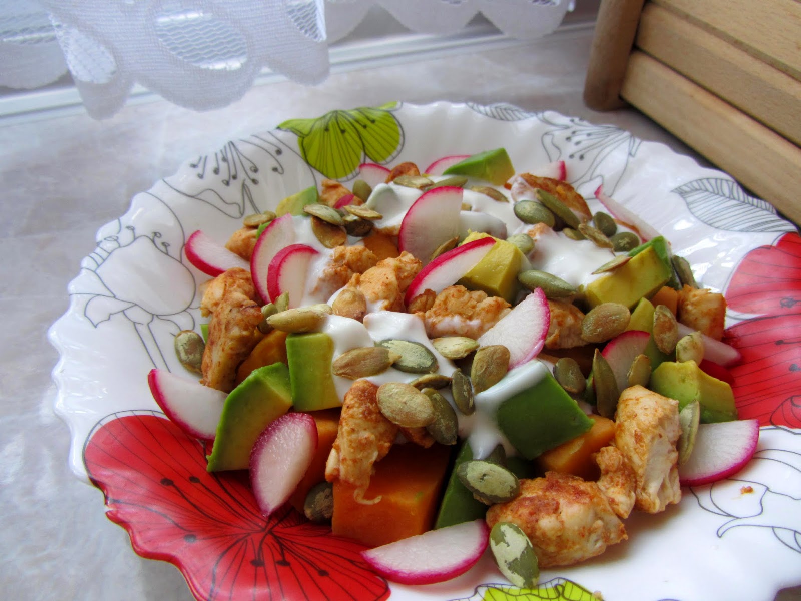 Sałatka na ciepło z batatem, awokado i kurczakiem