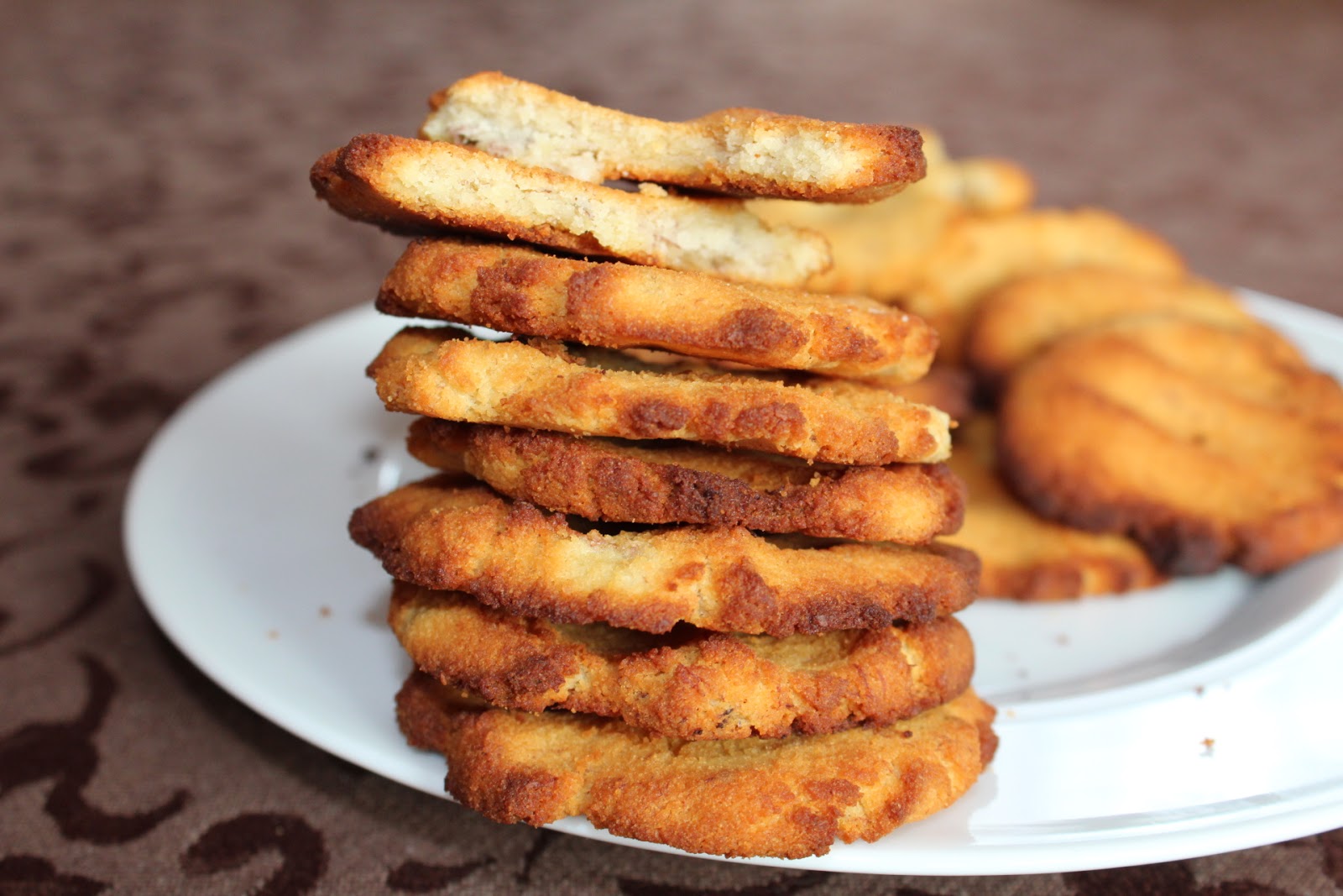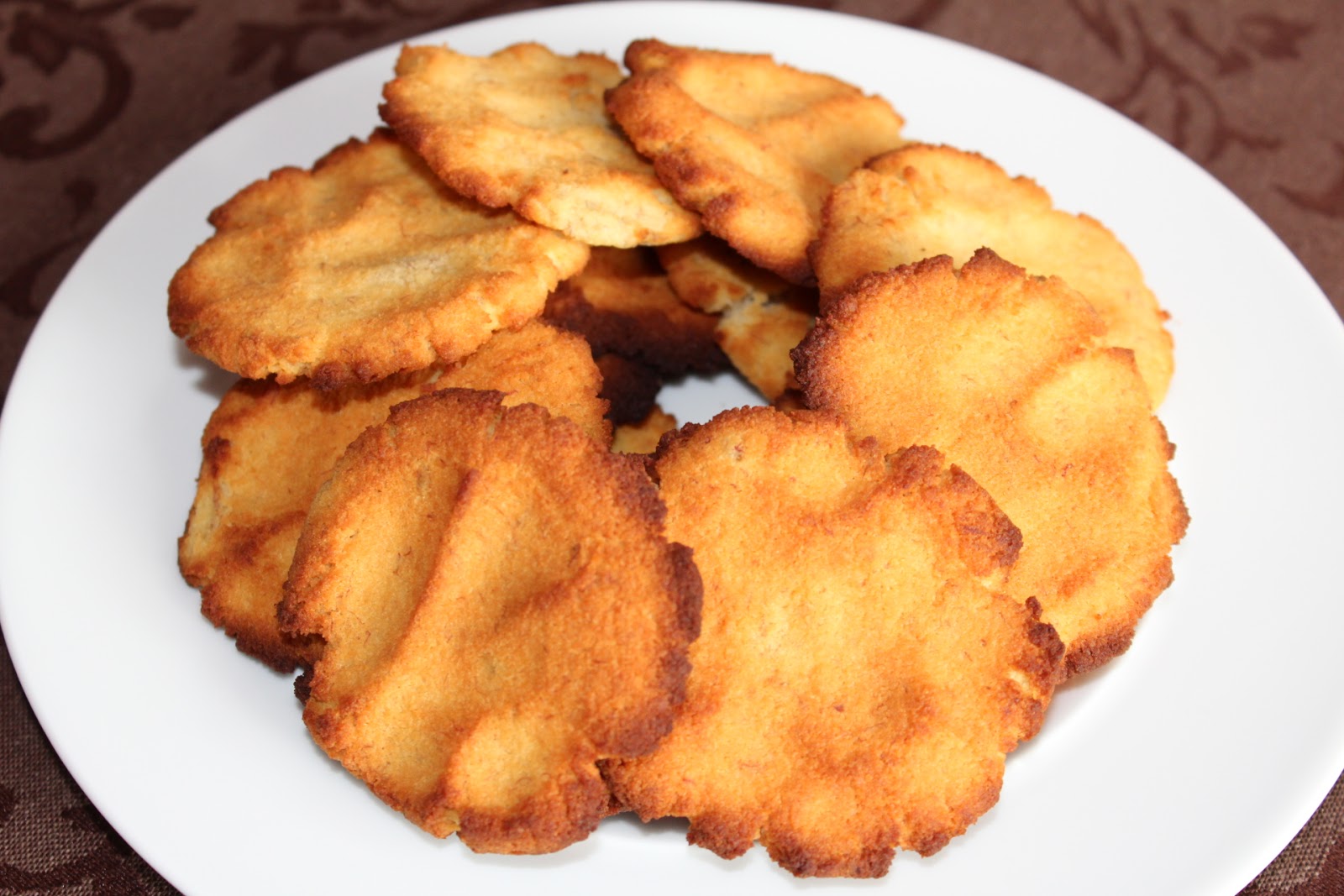 Blachę wyłożyłam papierem do pieczenia, z ciasta robiłam kulki i rozpłaszczałam je dłonią na blasze,