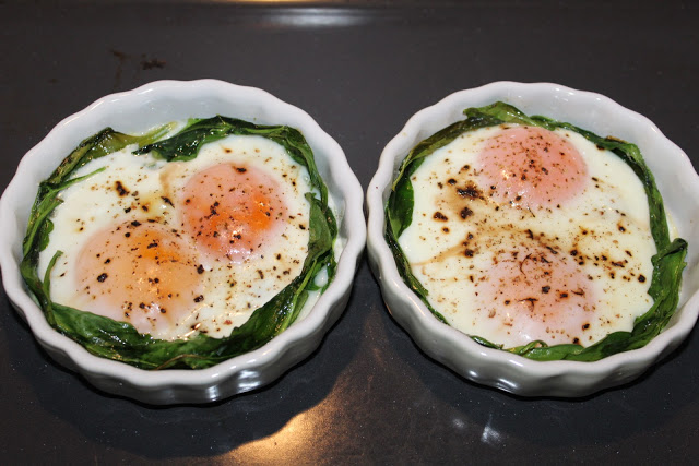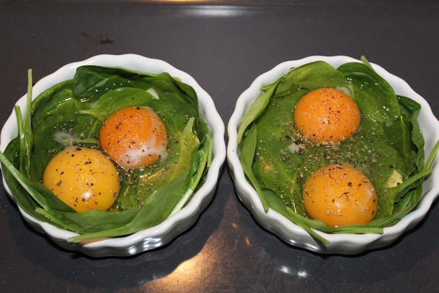 Jajka zapiekane na szpinaku