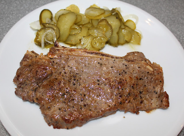 Od sprzedawcy dowiedziałam się jak wykorzystać rozbef, poprosiłam żeby ukroił mi cztery kotlety z kością i tak oto powstała najprostsza potrawa jaką do tej pory przyrządzałam.