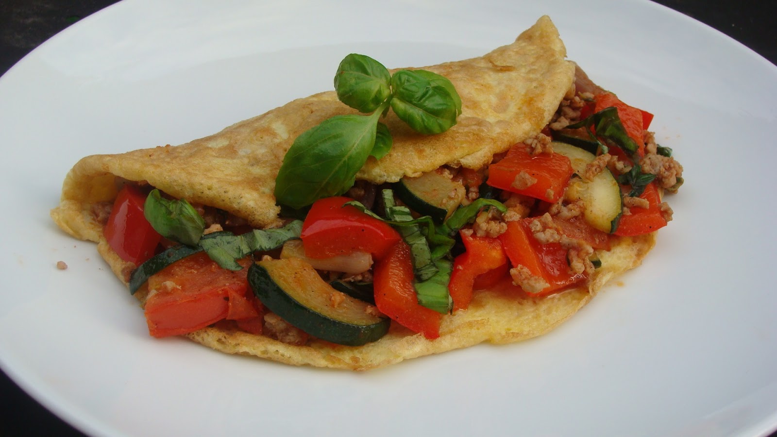 Jak cukinia zmięknie dodaję pokrojoną paprykę i pomidora.