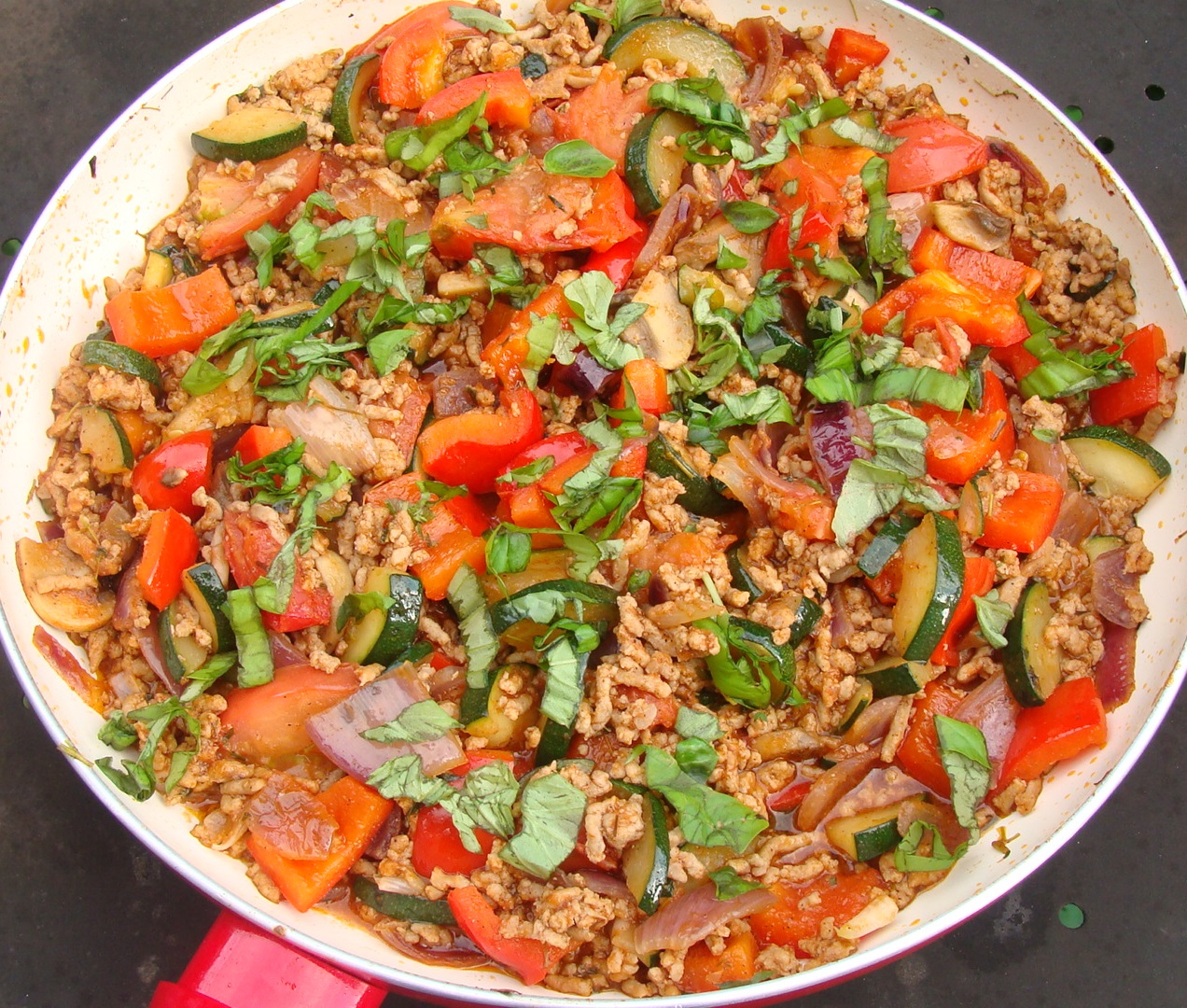 Wyłączam gaz, całość posypuję posiekaną bazylią.