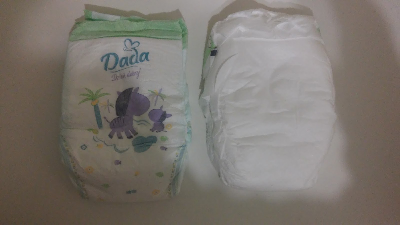 Polecono mi na samym początku Dadę. I 1 kupiliśmy Dadę, wszystko było ok. Wygodne, zero problemów i 1 kupa na zewnątrz (przewijał tata, więc się nie liczy). W paczce ze szpitala dostałam Pampersy, ale nie zachwyciły mnie na tyle, by je kupować. Pampersy rzeczywiście wydawały się być miększe, ale czytając teksty marketingowe z ulotki ubawiłyśmy się nieziemsko. Np. standardowy tekst: 12h. No kto by chciał chodzić z kupą w majtkach przez 12h? Ja nie, więc zakładam, że moje dziecko również nie. Zwłaszcza, że jego skóra "ma" dopiero jakieś parę dni.