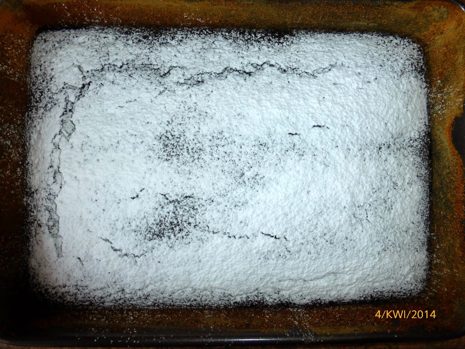 Czekoladę gorzką zetrzeć na tarce o drobnych oczkach. Do większej miski przesiać mąkę, dodać cukry, startą czekoladę, przesiane kakao, sól i sodę oczyszczoną, dokładnie wymieszać. W mniejszej misce wymieszać olej, wodę i ocet. Zawartość obydwu misek dokładnie wymieszać. Przelać do posmarowanej tłuszczem i obsypanej bułką tartą formy. Piec ok 45-55 min w 180ºC (do tzw suchego patyczka). Prze podaniem posypać cukrem pudrem.