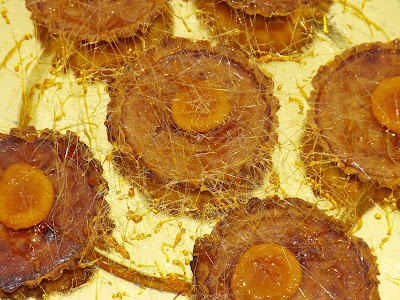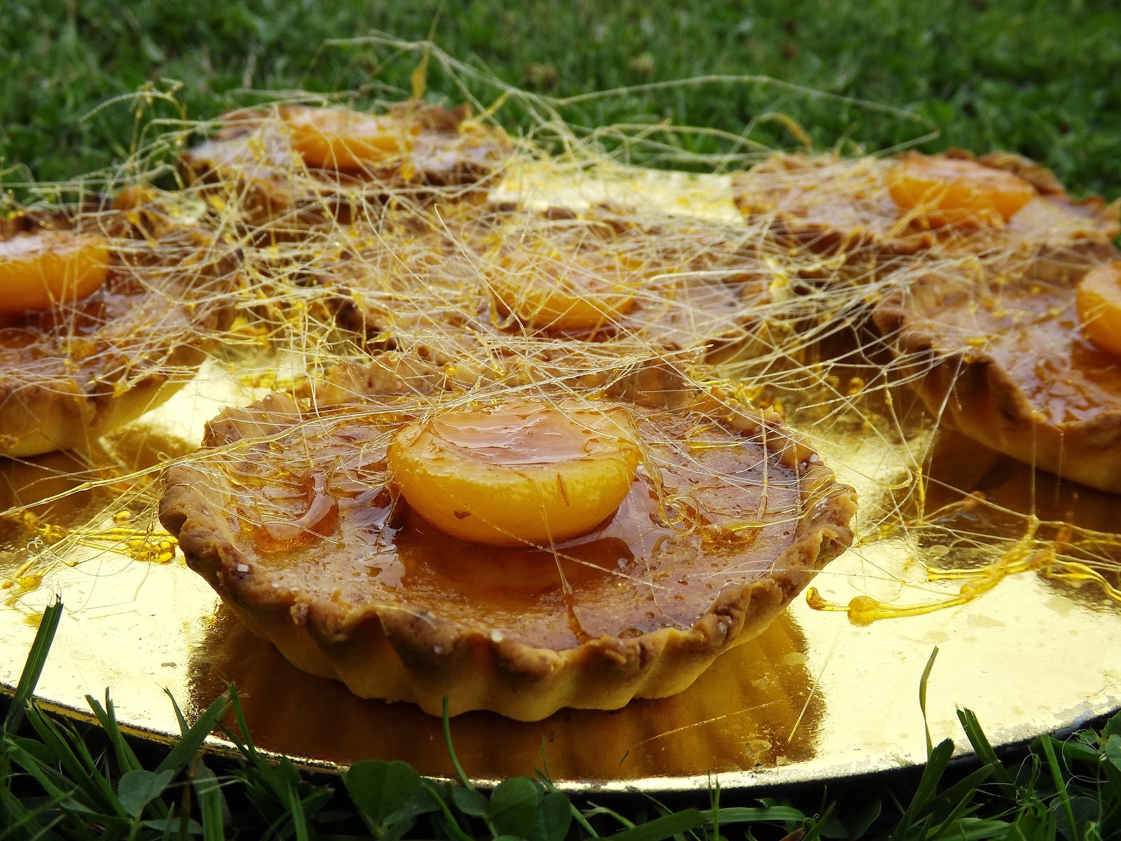Moje mini tarty pod słodką pajęczyną się schowały i smażonymi mini morelami się uśmiechały. Sześć sztuk ich przygotowałam, bo tylko tyle foremek miałam, a szkoda bo szybko zjedzone zostały, bo wszystkim smakowały.
