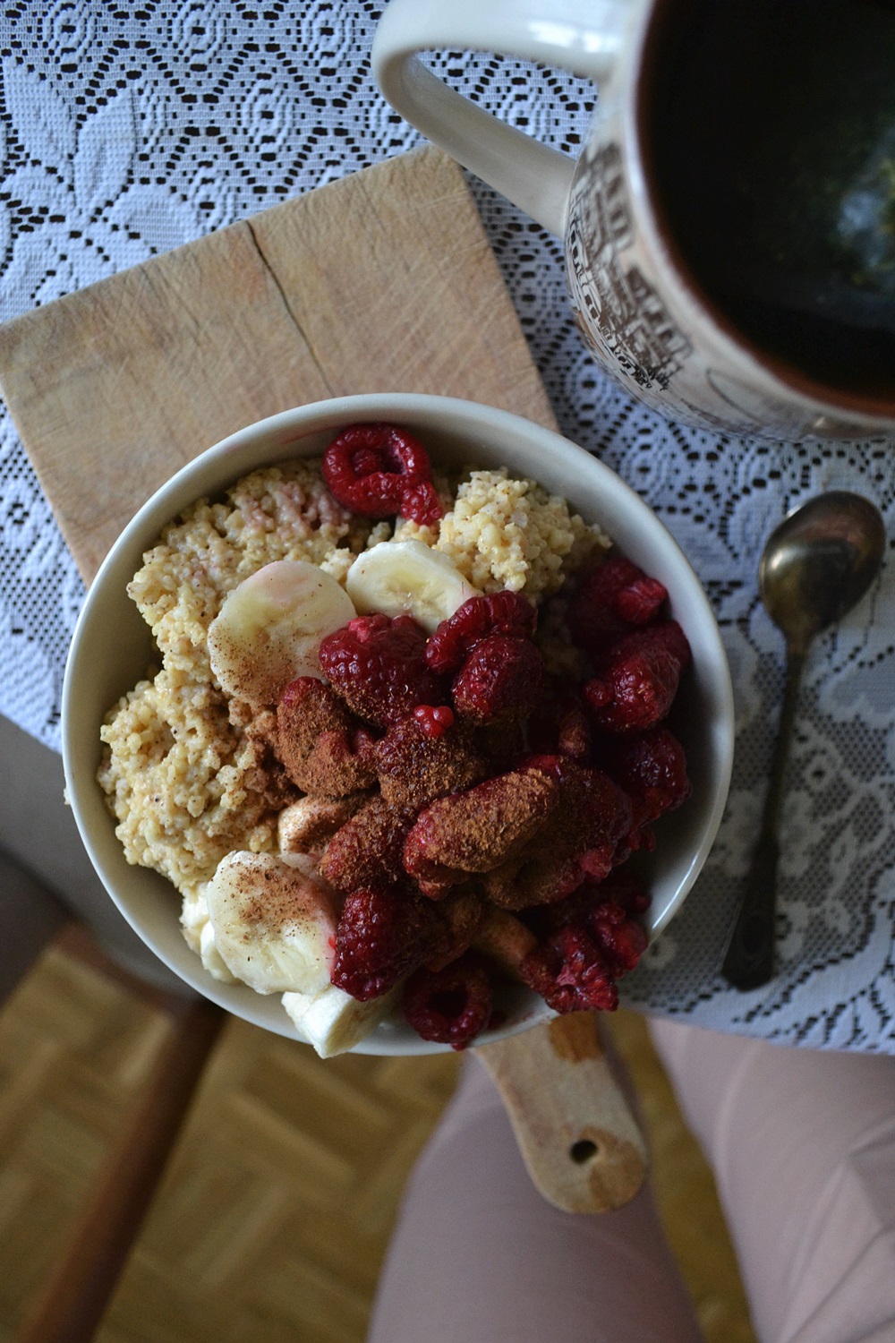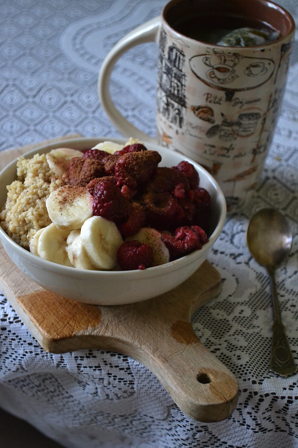 Orzechowa kasza jaglana*; z bananem i malinami