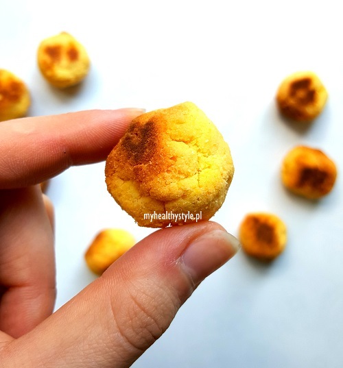 6. Pieczemy w temperaturze 150 stopni przez około 20 min. Po kilku minutach pieczenia odwracamy przyrumienione kulki na drugą stronę. Po kilku minutach robimy to jeszcze raz, tak by kulki zarumieniły się równomiernie dookoła.