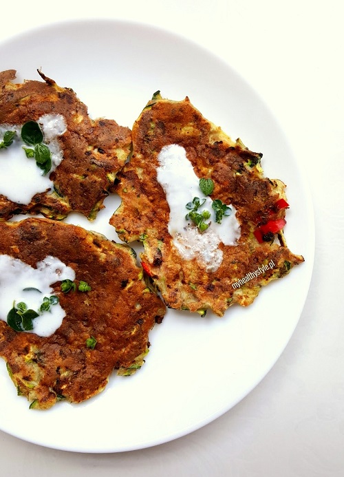 TUTAJ mogliście znaleźć przepis na placki z kaszy jaglanej, które sprawdzają się na śniadanie oraz przekąskę. Dziś pora na wspaniałe placki z cukinii, które dopełniają tego plackowego menu na przykład jako obiad lub kolacja.