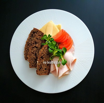 Dodatkowo kromka chleba razowego z odrobiną masła