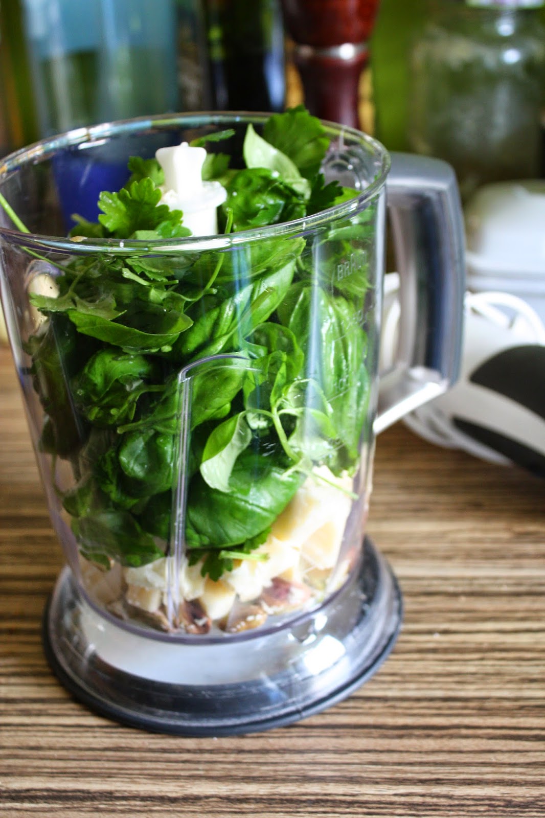 Zainspirował mnie Karol Okrasa, który w jednym programie zrobił sos na bazie pesto i polał nim pieczonego kurczaka. Ja pesto lubię nawet z chlebem albo samo wyjadane ze słoika. Wolę zrobić jego większą ilość żeby potem nieco dłużej móc go podjadać. Sos do mięsa to również niegłupi pomysł. Może następnym razem bo po tym pesto zostało już tylko wspomnienie.