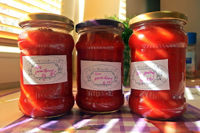 Gorący sos przekładamy do wyparzonych, suchych słoików. Pasteryzujemy 15 min.