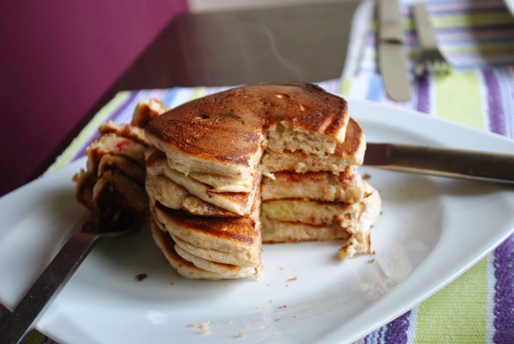 Pełnoziarniste pancakes z bananem i porzeczkami.