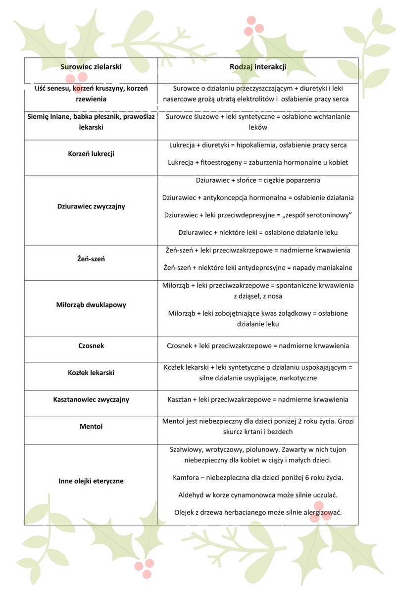 Najczęstsze negatywne interakcje ziół z lekami syntetycznymi: