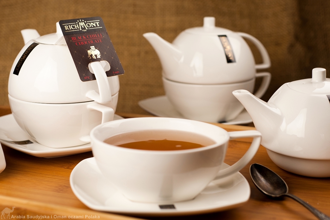 - herbaty i kawy - podobnie jak w przypadku słodyczy, także i tutaj wybór jest bardzo szeroki. Jednak w przypadku upominków staram się unikać marek dostępnych w popularnych marketach. Ogromnym uznaniem naszych znajomych i naszym cieszą się herbaty Richmont - zwłaszcza Earl Grey Blue i Black Chili Chocolate. W zależności od wielkości opakowania dostępne są w przedziale cenowym od 33 pln do 128 pln przy czym jedna saszetka zawiera 6 g herbaty czyli 3 razy więcej niż te, które zazwyczaj widzimy na sklepowych półkach. W tym samym sklepie można także dokupić porcelanowy dzbanek z filiżanką (w cenie 59 pln) oraz kawy, także w zestawach prezentowych