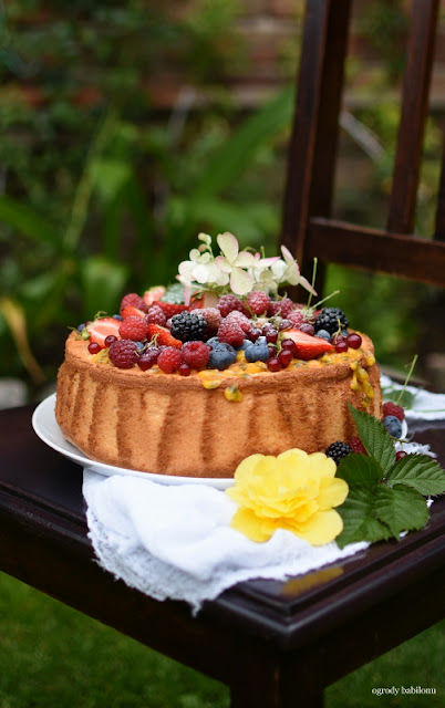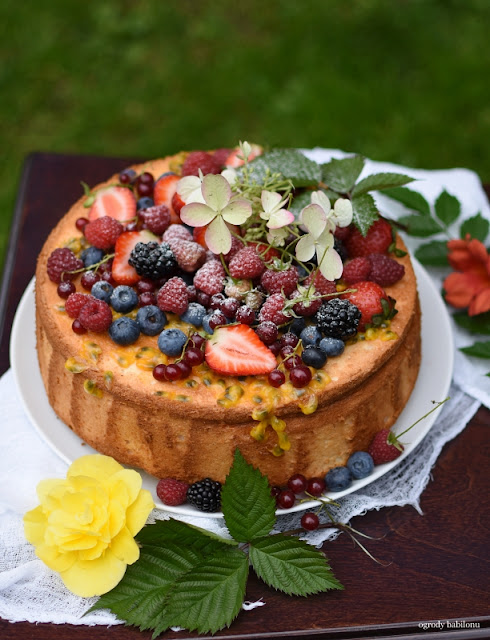 Ciasto anielskie jest leciutkie jak chmurka i bardzo delikatne, przygotowuje się je z dużej ilości białek, bez dodatku tłuszczu. Ciasto anielskie z marakują i owocami lata jest przepyszne, doskonale pasuje do niego marakuja, która nadaje ciastu wspaniałego aromatu a owoce lata pięknie wyglądają i wybornie smakują podane do towarzystwa.