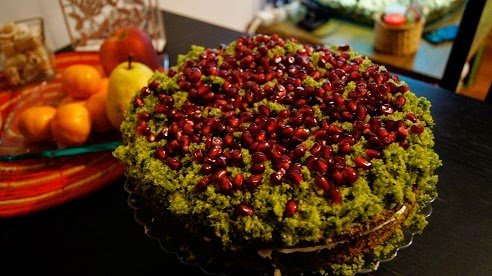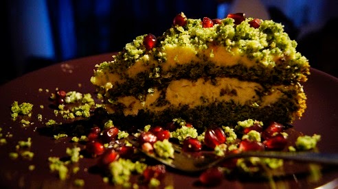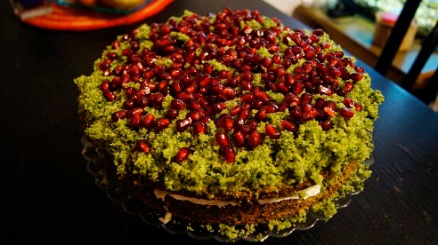 Na samą górę ciasta, układam pestki granatu. Zamiast granatu można użyć jagody, maliny, srebrne perełki cukrowe - wszystko to na co macie ochotę. I już - leśny mech jest gotowy.
