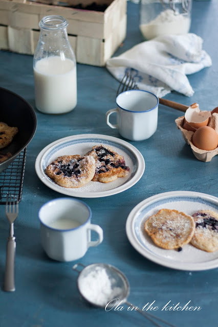 Jak ja uwielbiam placki moje ulubione to z jabłkami, ale w sezonie jagodowym nie może zabraknąć i takich. Podane z kleksem kwaśniej śmietany, oprószone cukrem pudrem po prostu wymiatają, kwintesencja lata :) Delikatne i puszyste czyli takie jakie lubię najbardziej. A Wy lubicie placki? :D