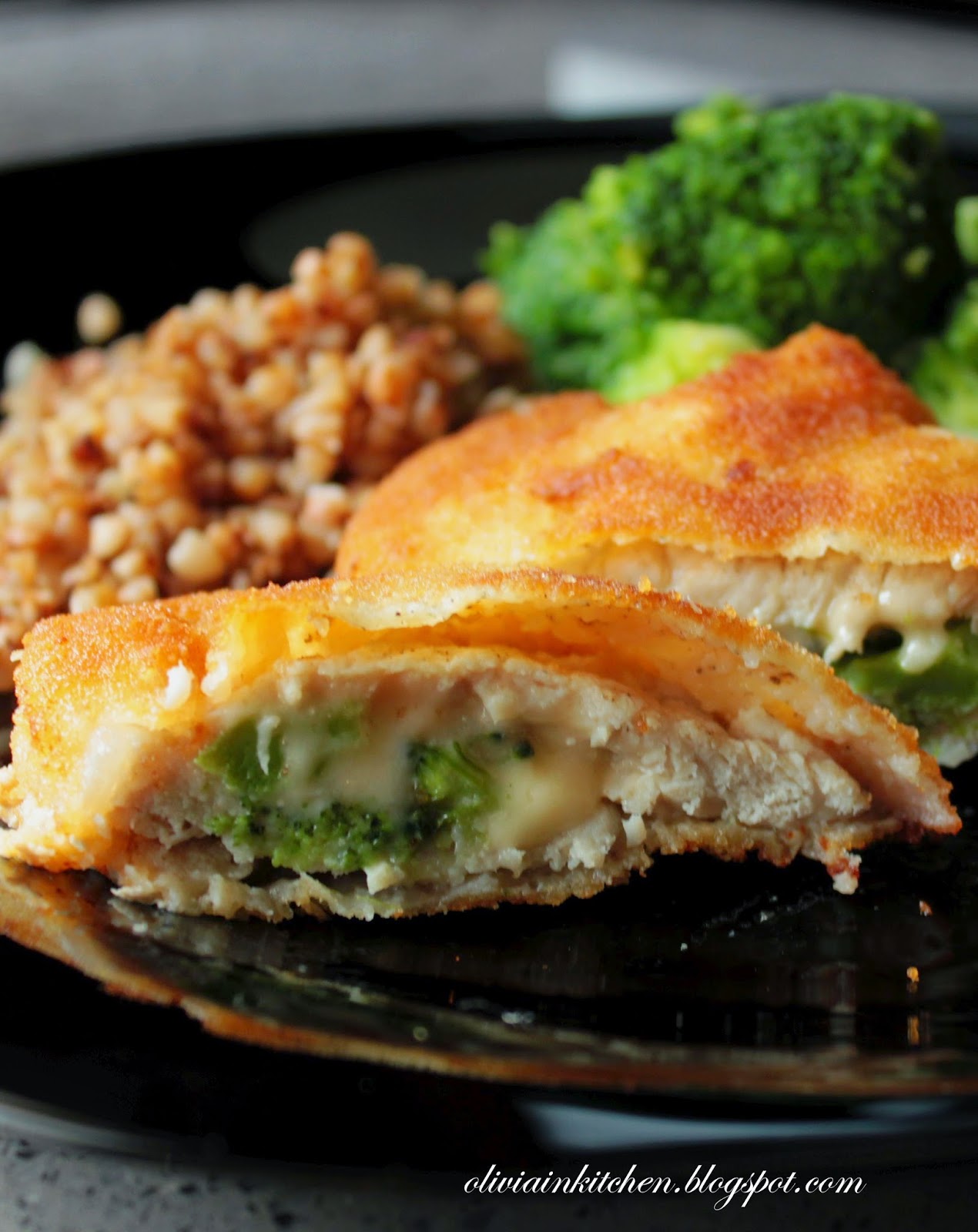 Kieszonki ze schabu wypełniona serem i brokułami otoczone chrupiącą panierką. Podaję z gotowanymi brokułami oraz kaszą gryczaną, którą można zastąpić np. gotowanymi ziemniakami.