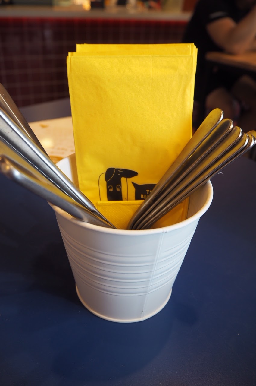 Jadłam ich specjalne frytki, bo wszystko w menu nazywa się śmiesznie a motyw kiełbaskowego jamnika jest wszędzie obecny – od serwetek, przez podkładki pod piwo do bluzeczek w których chodzi obsługa.
